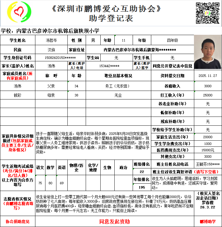 欢迎愿意帮助贫困孩子的朋友们伸出友爱之手,让贫困孩子顺利完成学业和感受到人与人之间的关爱!